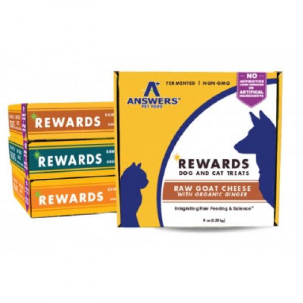 Who doesn't love giving their dogs and cats cheese? With Rewards™, Answers has made cheese treats even better. Their ingredients start with grass-fed, organically raised, truly raw goat cheese resulting in a uniquely delicious and healthy twist. They are are teeming with protein, healthy fats, and good bacteria. These treats are so good, they’re sure to fool your best friend into thinking they got away with something.