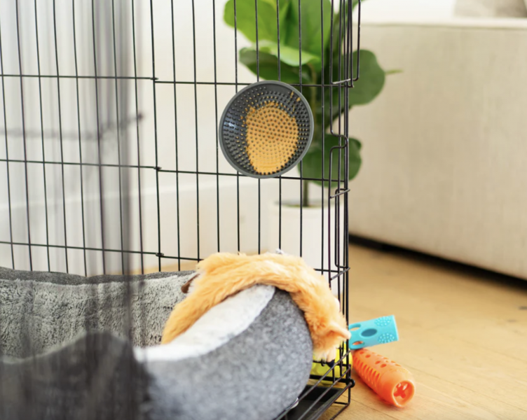 Let your mutt lap up those healthy soft treats, supplements or food during crate time.Just spread your mutt's favorite snack over the surface or challenge them further by freezing to prolong their enjoyment.