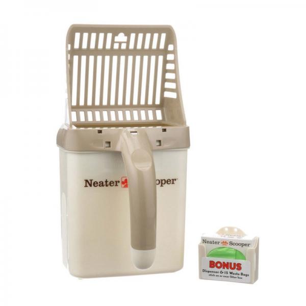 Neater Scooper’s attached waste bin & clever trap door design, makes cleaning the litter box a whole lot easier. Scooping & bagging is combined into a quick, easy, one hand operation. No more spilled Litter! Eliminates touching soiled bags, making it more sanitary. Includes your choice of either 15, 60, or 195 scented bags with tie handles to seal in odor. Designed for quick sifting with less dust. Just squeeze bin to detach scoop. Scoop can be placed upside down in bin for storage.