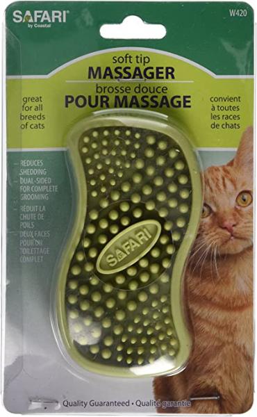 For cats with a smooth coat, this rubber curry brush provides a relaxing massage while it removes dust, dirt, and loose undercoat from the healthy fur. It is dual-sided with different lengths of teeth on each side to accommodate cats with short or medium-length coats.