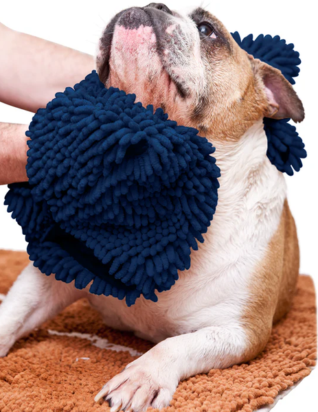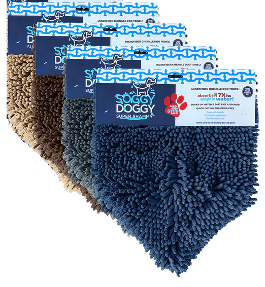 Introducing the Soggy Doggy Super Shammy Dog Towel - this towel is a bath time game changer! Made of premium microfiber chenille, this towel can soak up 7 times its weight in water while trapping dirt like a sponge.
