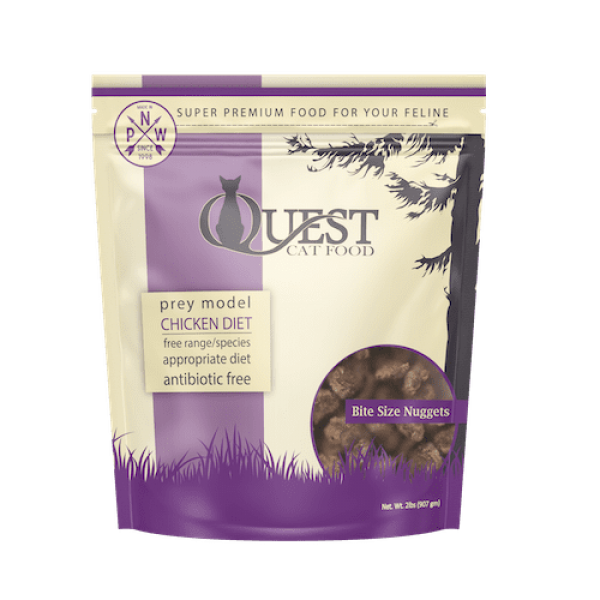 Quest Cat Food is a Prey model diet consisting of 95% meat, bone, and organ. Steve's adds a few super-foods to round off the diet and make it the purrrfect food for your feline. Smaller bite-size nuggets make it easier for cats to dive into a bowl of fresh food. Lean, low-fat muscle meat is used that provides high levels of zinc and copper--two nutrients that work together to support metabolism. Steve’s Real Food chicken recipe is a frozen raw cat food formulated to exceed the nutritional levels established by AAFCO Cat Food Nutrient Profiles for All Life Stages.