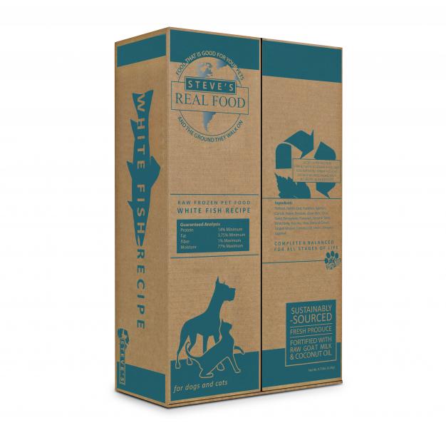 Steve’s Real Food frozen raw white fish recipe is our lowest fat recipe. The fish are sourced from fisheries certified by the Marine Stewardship Council (MSC). MSC is an organization that upholds rigorous standards for sustainable fishing and seafood traceability. Our white fish recipe is complete and balanced for all life stages and species-appropriate for dogs and cats.