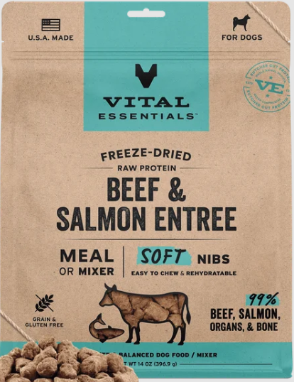Vital Essentials Dog Food FD Soft Nibs Beef and Salmon 14 oz